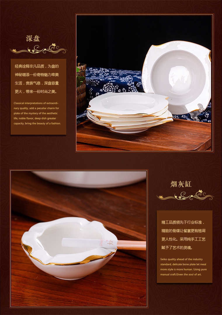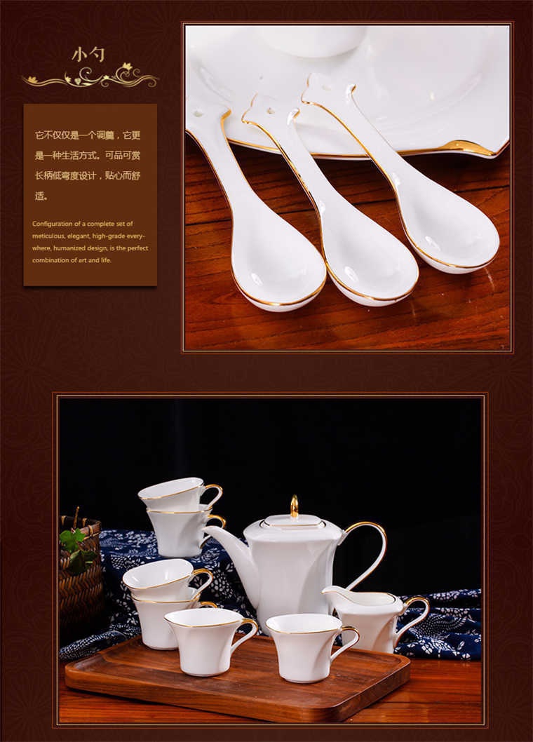 73頭旋方帶咖啡具,餐具一個(gè)湯煲,一個(gè)魚(yú)盤(pán),一個(gè)十寸平盤(pán),一個(gè)大湯勺,一個(gè)煙缸,一個(gè)牙簽筒,兩個(gè)面碗,十個(gè)八寸盤(pán),十個(gè)4.5寸飯碗,十個(gè)味碟,十個(gè)調(diào)羹,十個(gè)筷子架。咖啡具一個(gè)咖啡壺,一個(gè)糖缸,一個(gè)奶罐,六個(gè)杯子,六個(gè)碟子。